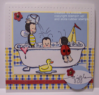 One of the stamps you could use for this challenge was a bathtub scene. This image came to my mind right away. I love bugs (cute bugs that is).