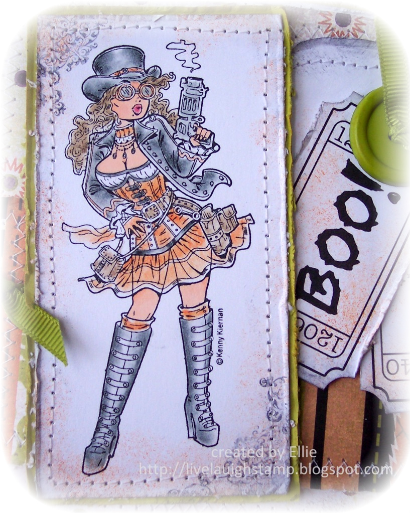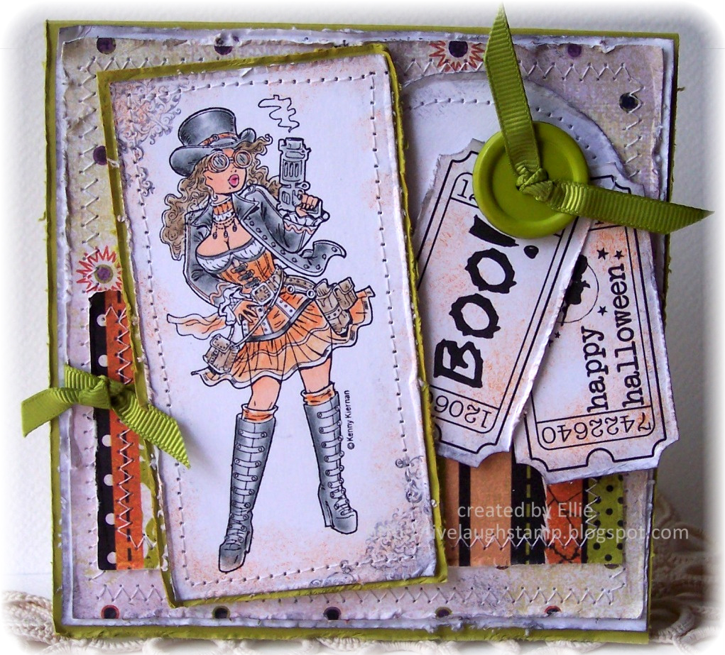 The ticket sentiments are digital stamps by Raindrop Echo, which are also available at Whimsy in the digital stamp collection.I colored the image using my derwent coloursoft pencils and some copic markers for the skin. The paper is from Basic Grey, card stock is from Stampin Up.