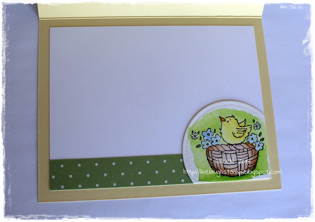 I used another cute Penny Black stamp colored with the Zig clean color pens, then cut out a partial circle to add to the inside.