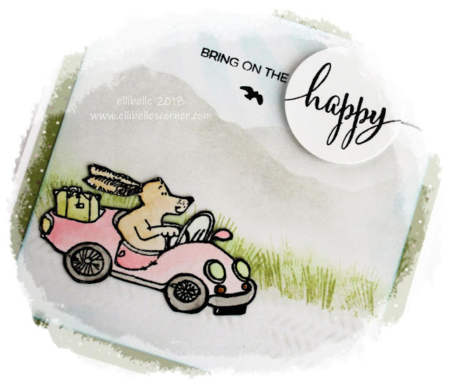 DeleteWhat a gorgeous card Ellie - and I think the 'happy' in the circle is perfect! Love your soft background that makes such a fabulous backdrop for your travelling dog :)