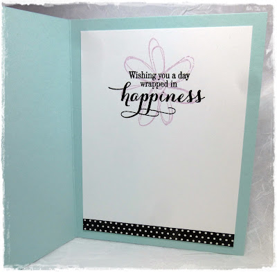 Please excuse the marks you see on the white card stock on the inside of the card. I have a few smudges on my camera lens that I have no idea how to get rid off...I usually try to crop them off the card, but wasn't able to in this photo, because I didn't pay attention when I took the photo.