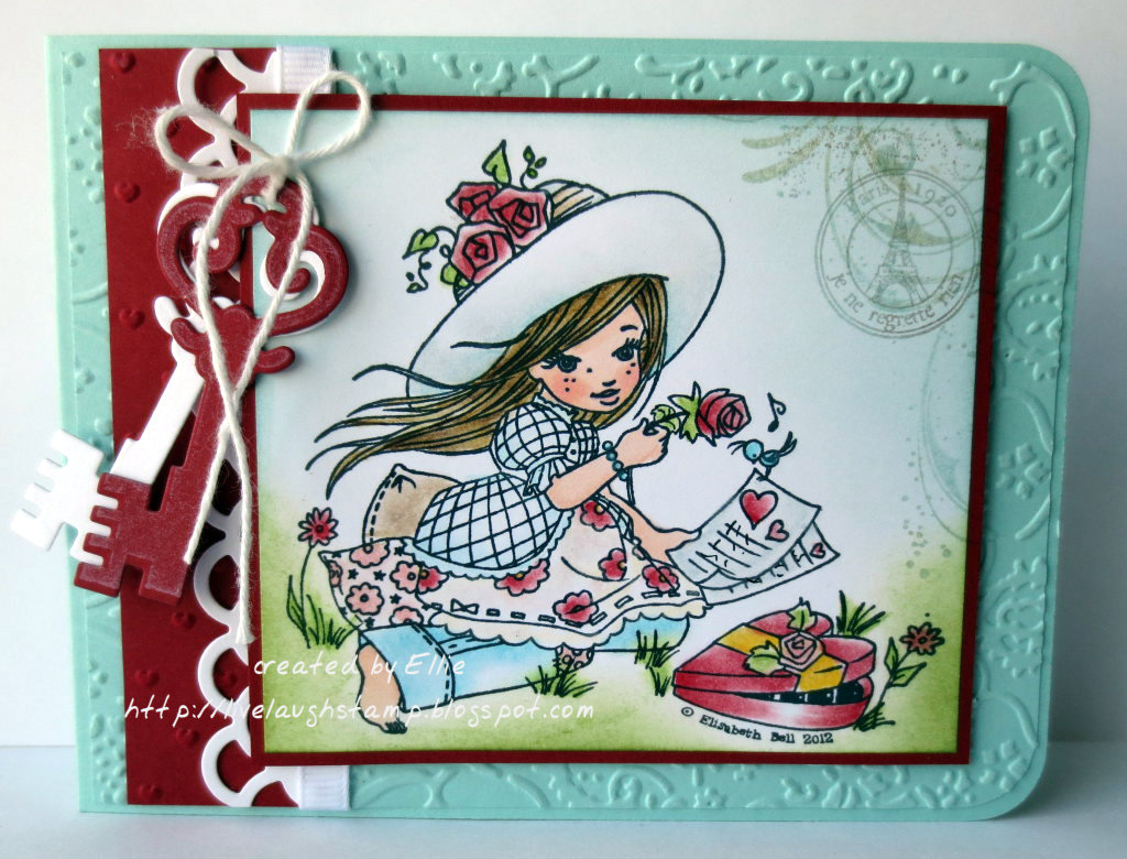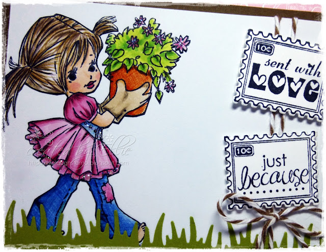 The cute stamp I used here is from Whimsy Stamps latest release - Josie Bell Bride from the Elisabeth Bell collection.