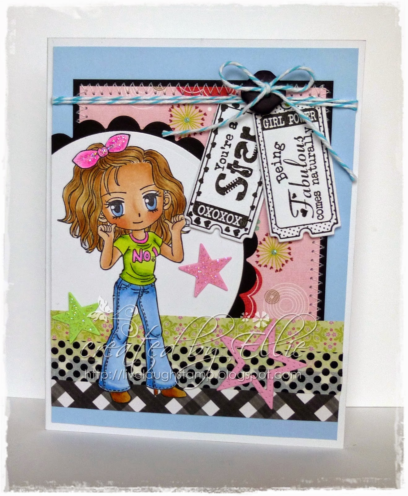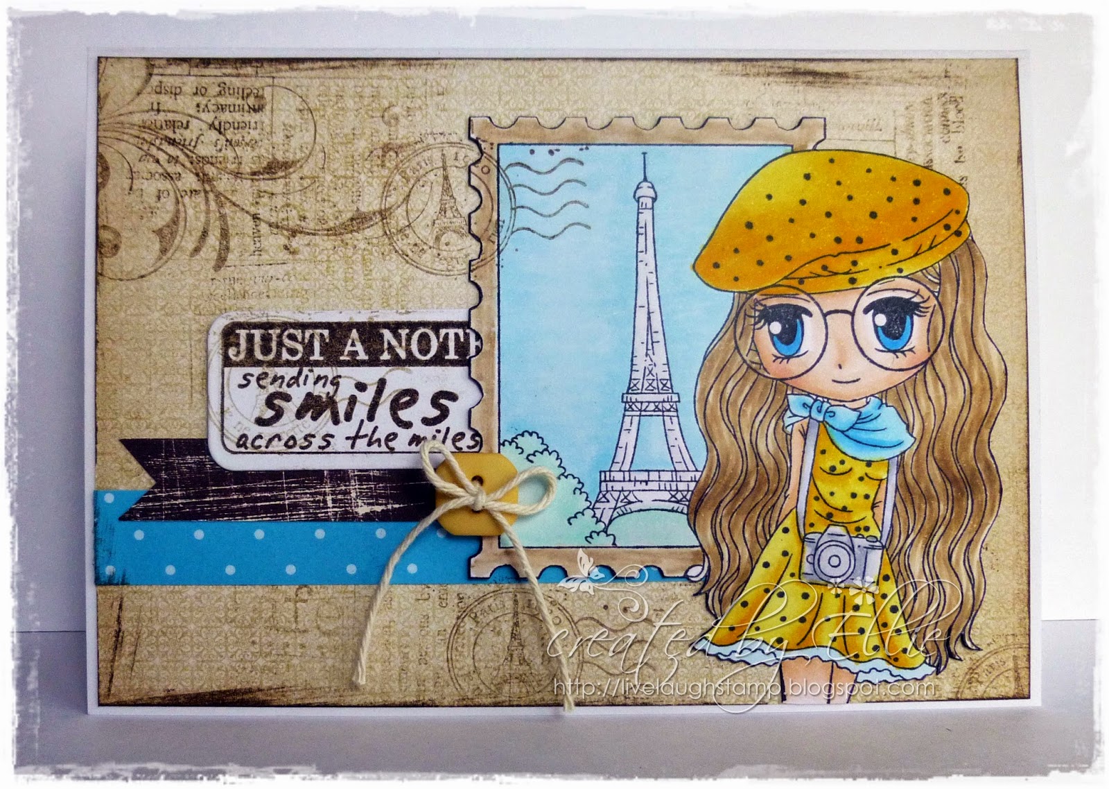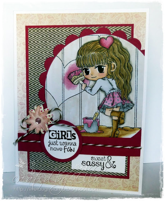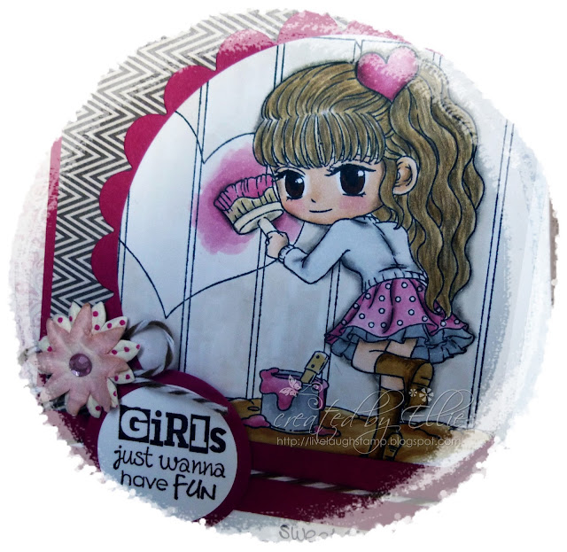 "Painter Pennie" for my creation. Pennie has been colored with copic markers and then fussy cut.