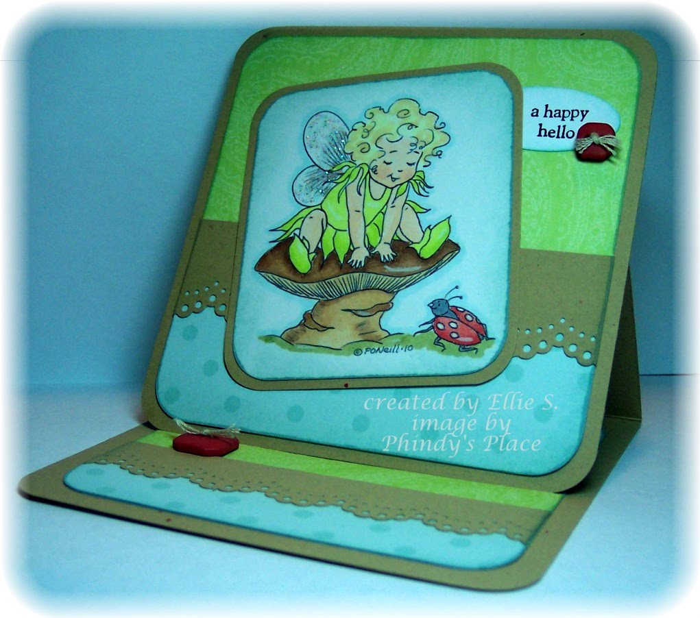 As this week's Challenge at Phindy's Place is "Shaped Cards", I decided to make a center step card. I have only made this shape once before. Instructions can be found here.