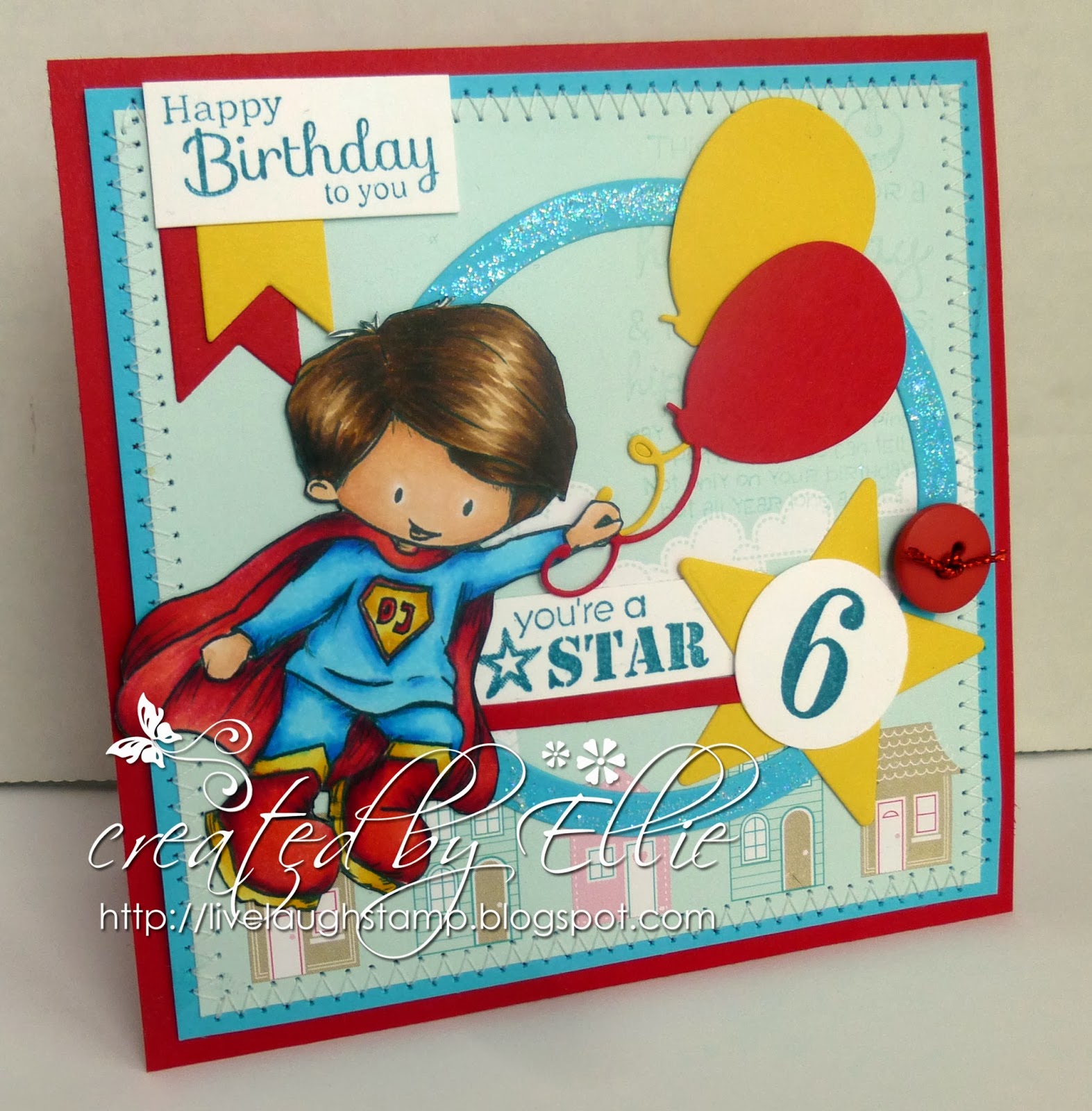 The sentiments are also from Whimsy (Everyday Moments). The number 6 is from an old SU numbers set.