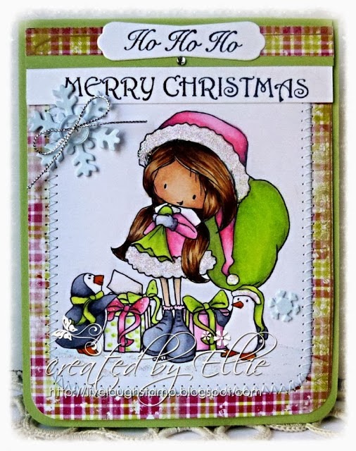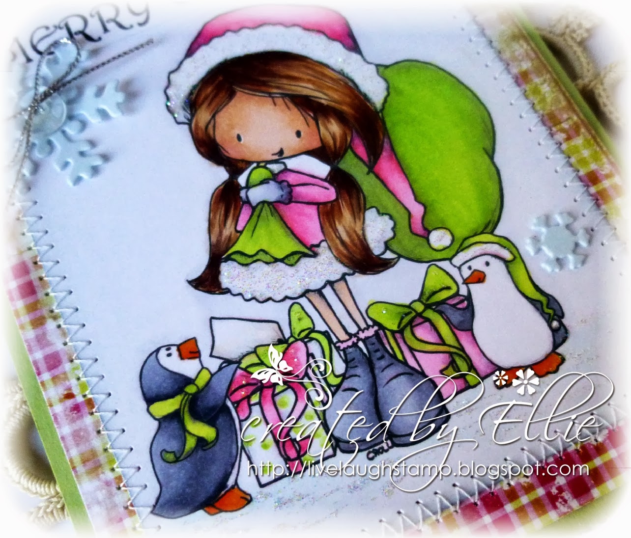 Embellishments: glitter, button, twine