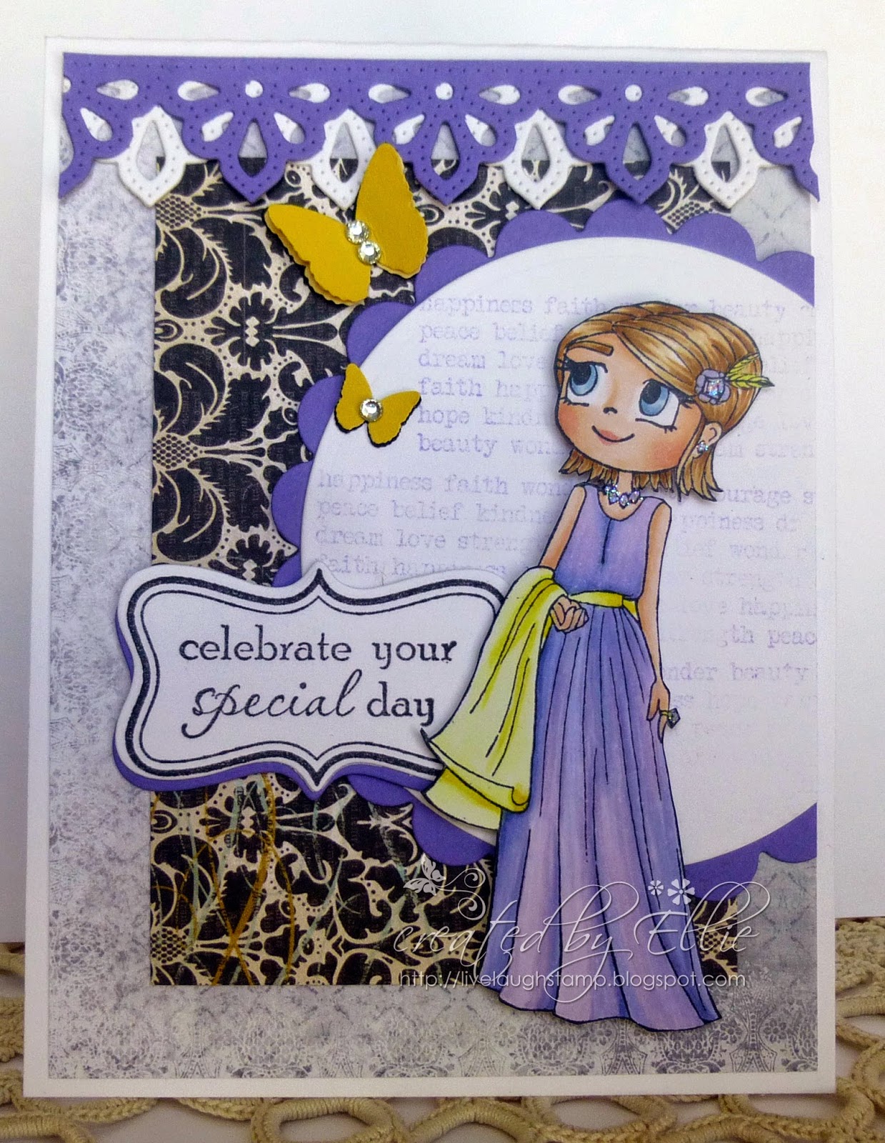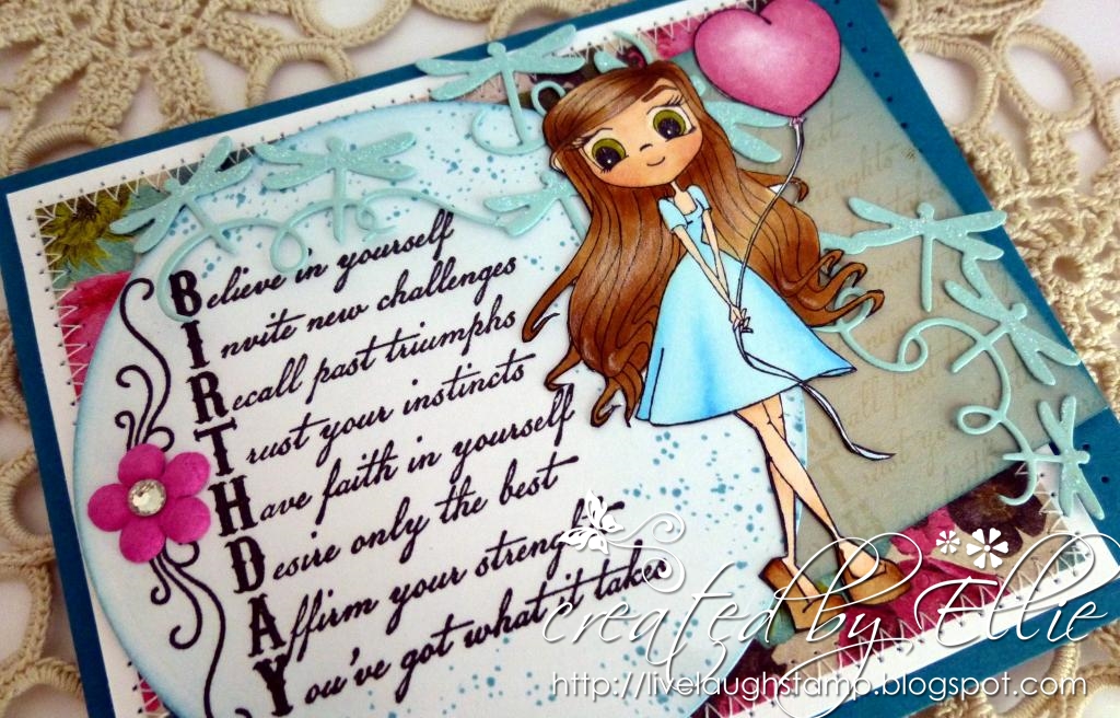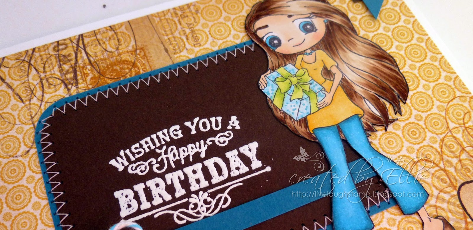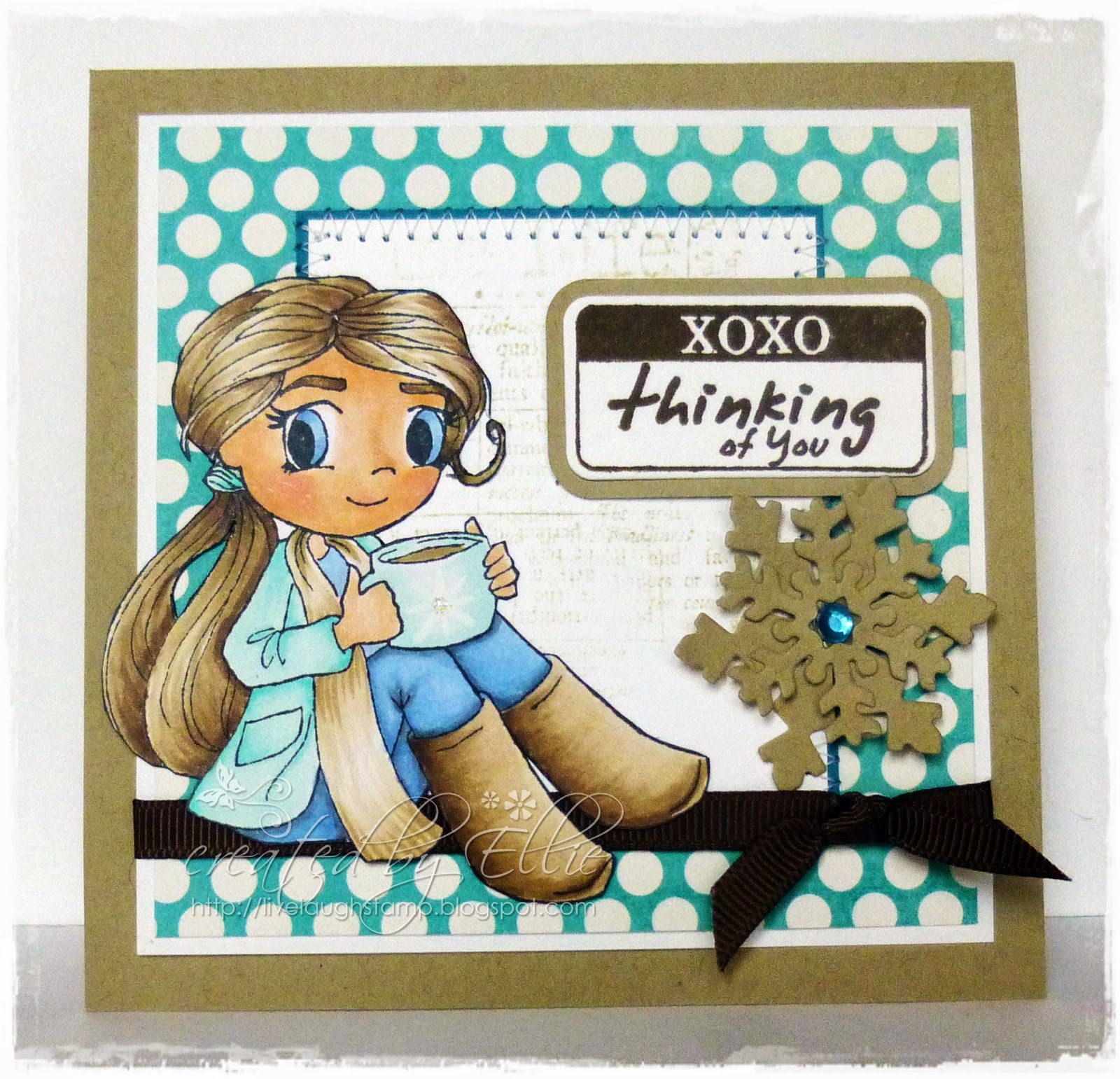 Sentiment is from another favorite Whimsy Sentiment set - Girl Talk. The card is simply embellished with ribbon and twine.