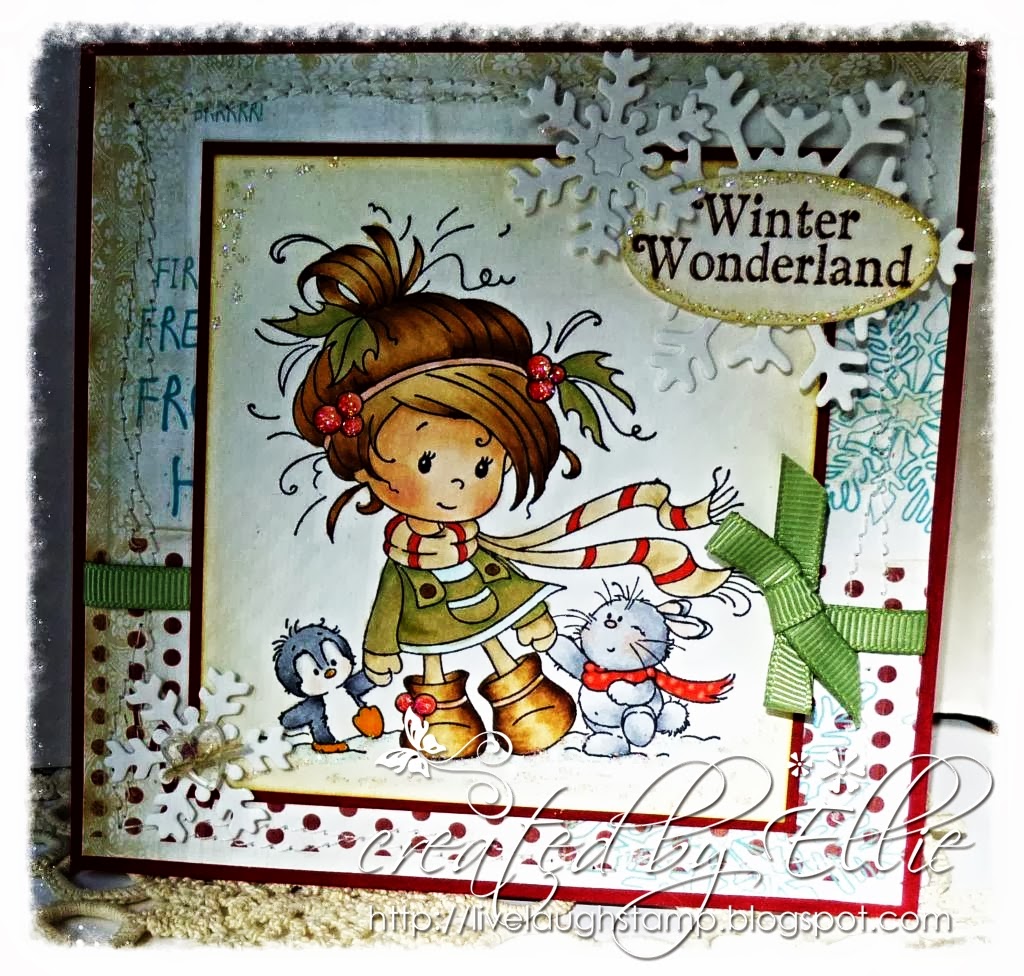 I used mainly copics for coloring, but also used two colored pencils for her hair, in addition to copic marker E50. I like to use this technique when the image is very detailed, to prevent ink from the copic marker bleeding out of the lines. I used memento ink on xpress it blending card for the image.